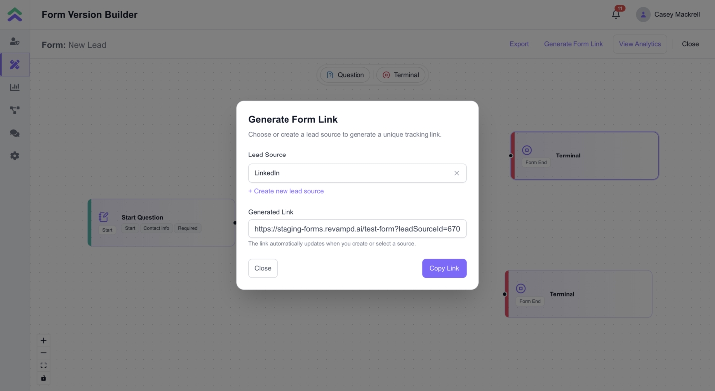 You can use the link directly (All new leads will be added to the unknown lead source) or you can choose / create a lead source. Once done, copy the link and use that wherever you need. Create sources per youtube video, Linkedin post, and more! This allows you to know what sources are actually performing.